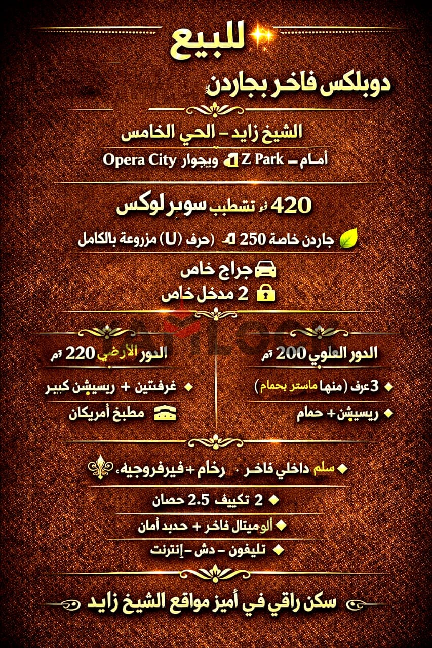 دوبلكس بجاردن داخل ڤيلا 420 م² للبيع في الحى الخامس أمام z park و أوبرا سيتى – الشيخ زايد