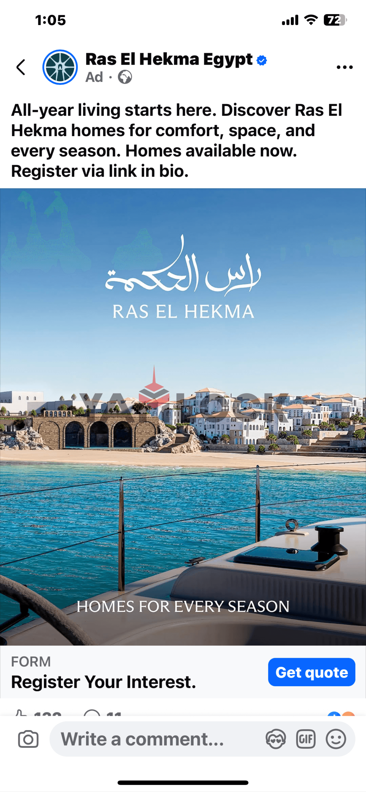شاليه 65 م² للبيع تشطيب كامل في هاسندا واترز الساحل الشمالي