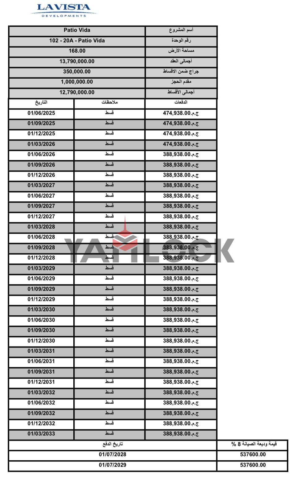 - الاقساط - تفاصيل الباقي أقساط على 8 سنوات مباشرة مع الشركة