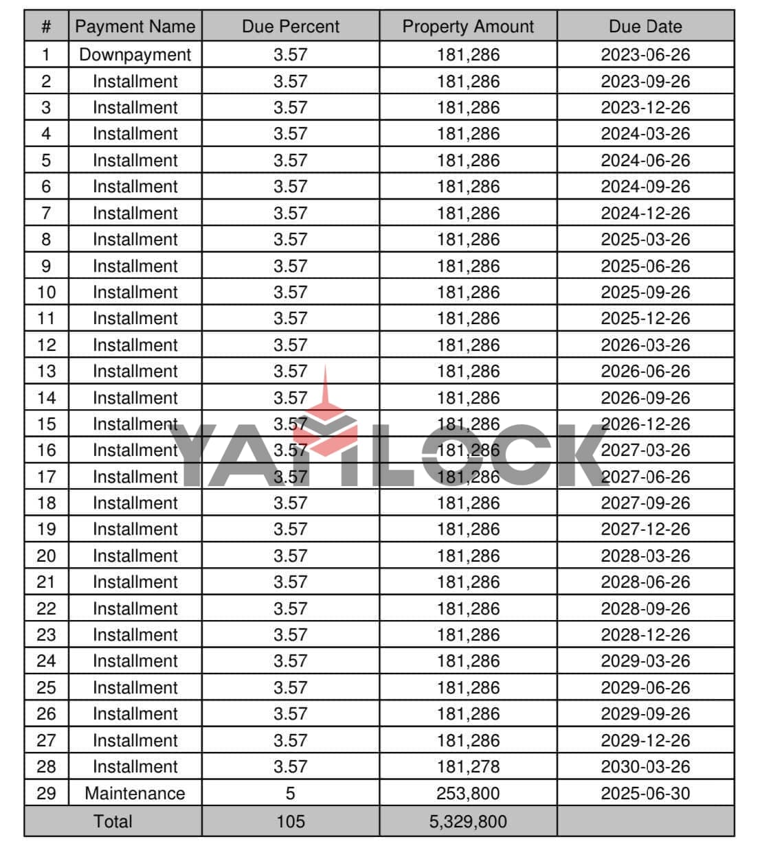 - الاقساط - تفاصيل الباقي اقساط ربع سنوي 181 الف لحد 2030