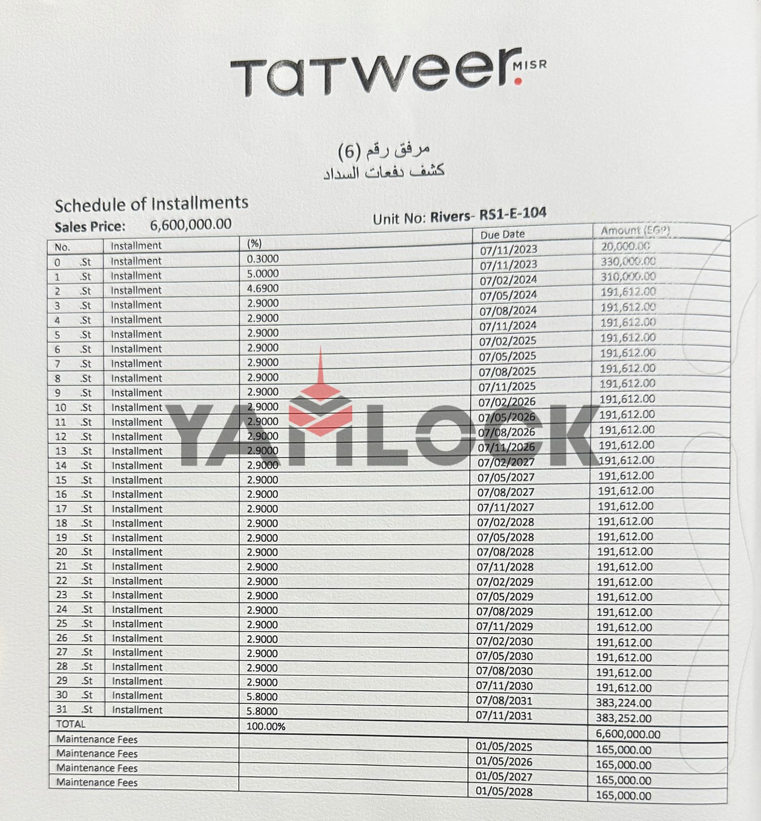 - الاقساط - تفاصيل الباقي اقساط ربع سنوي لحد 2031