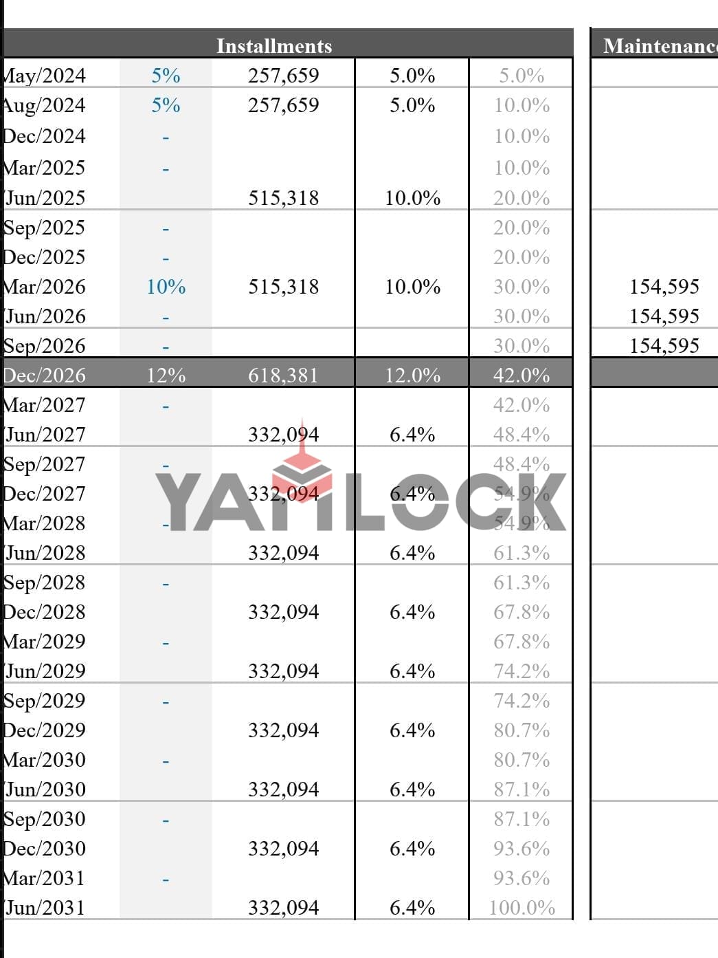 - الاقساط - تفاصيل اقساط سنوية لمدة 6 سنوات