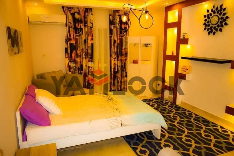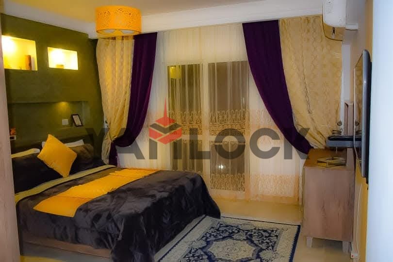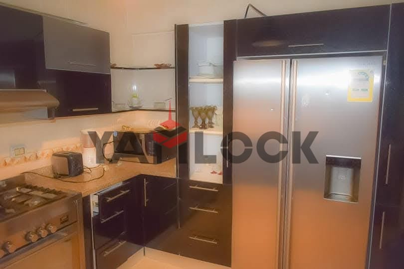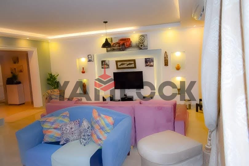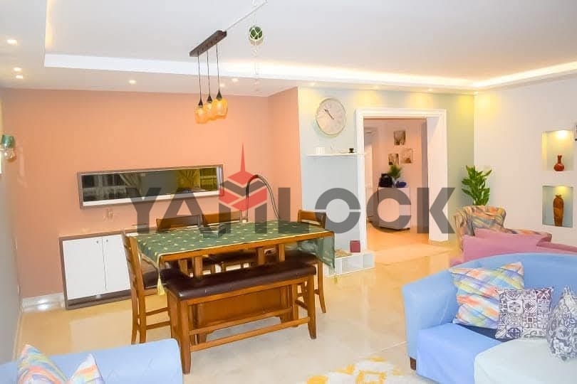 Al Rehab 2, Block 113, Building 2, 4th Floor. Overlooking a wide garden and a main street. Ultra-super-lux finishing. Consists of 3 bedrooms (one master), 3 bathrooms, a fully equipped kitchen, 2 balconies, and a reception area furnished with a lazy boy set, living room set, and dining set. Includes all electrical appliances. The building has 2 elevators, internet, and telephone. To contact the owner directly: 01123133424
