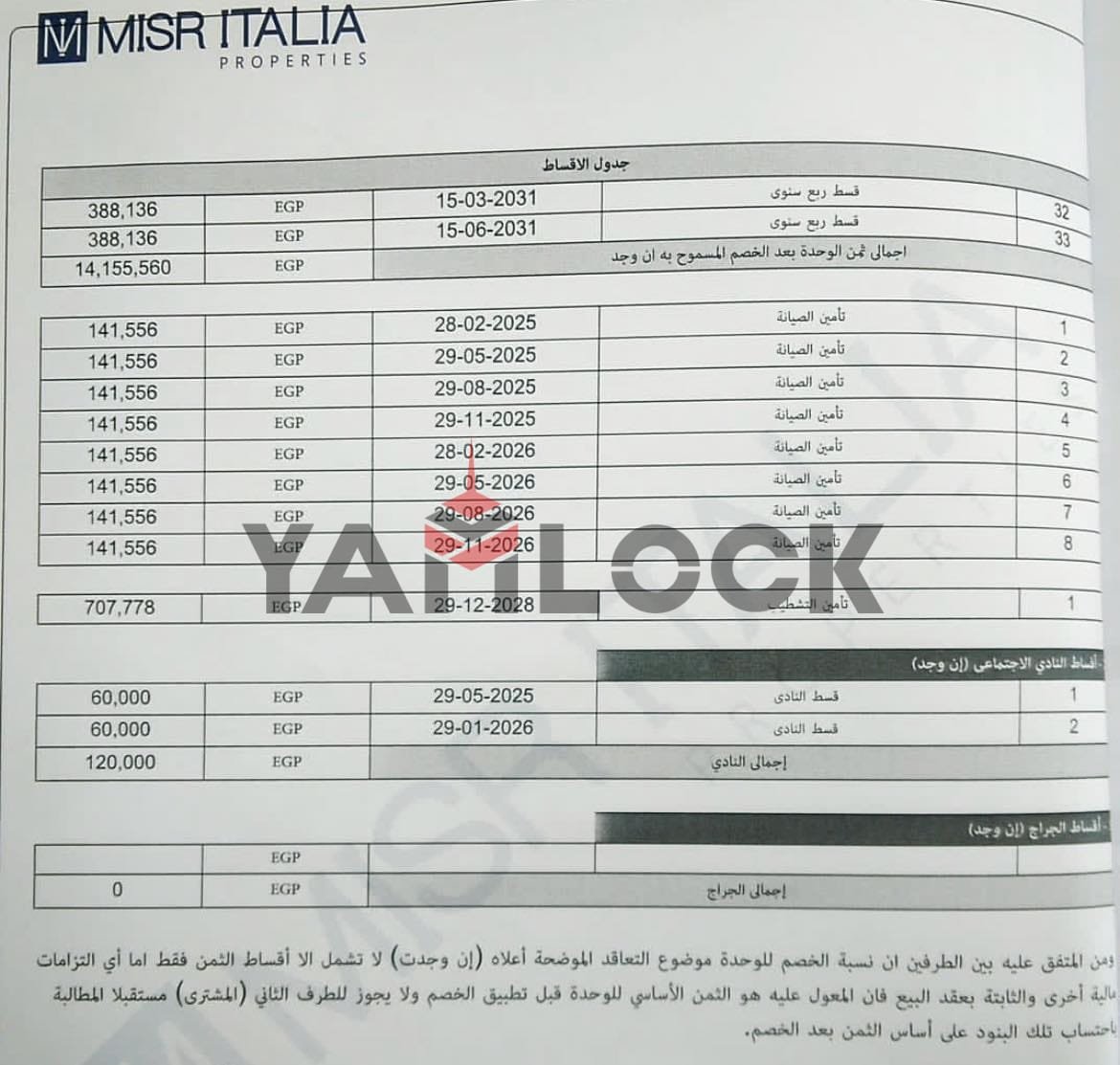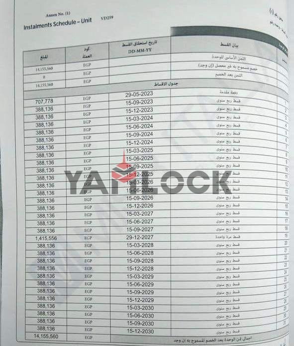 • الاقساط - تفاصيل الباقى اقساط لحد 2030