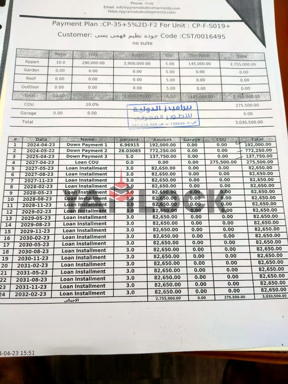 - الاقساط - تفاصيل الباقي اقساط لحد 2032