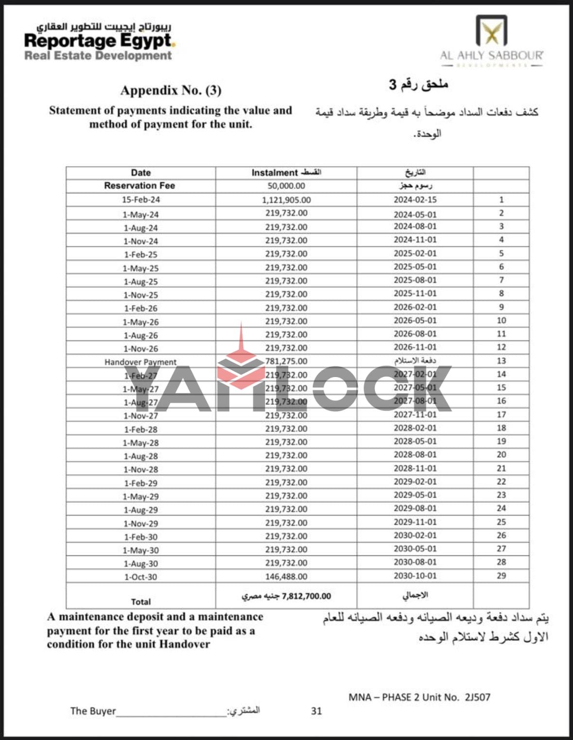 - Installement Details متبقي ٥ مليون علي ٦ سنوات