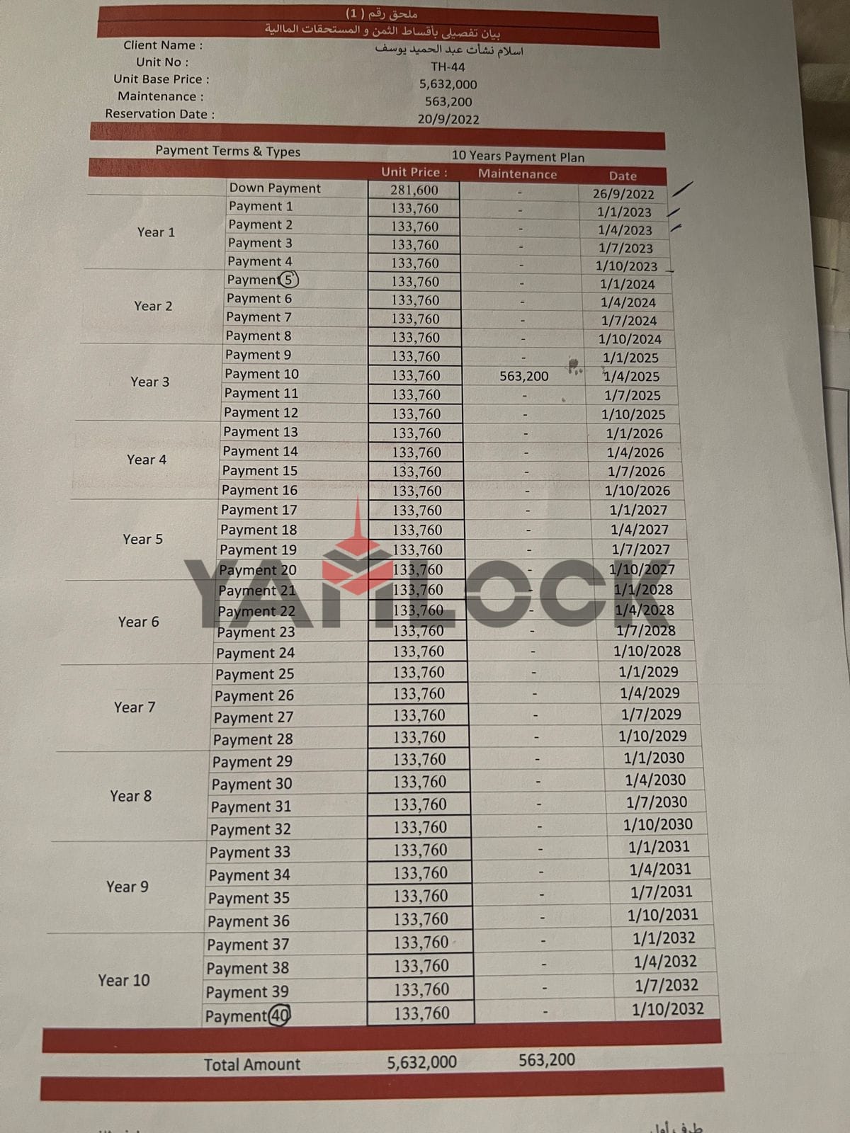 - Installement Details الباقي اقساط ربع سنوي لحد 2032