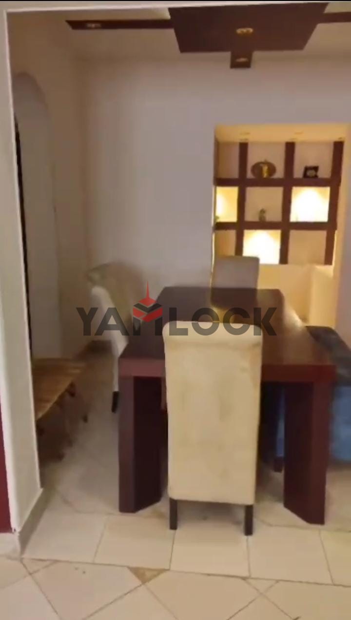 الدور الأرضي: مطبخ واسع متقفل بالكامل شغل خشب نضيف جدًا + غرفة نوم + ريسيبشن + حديقة خارجية
