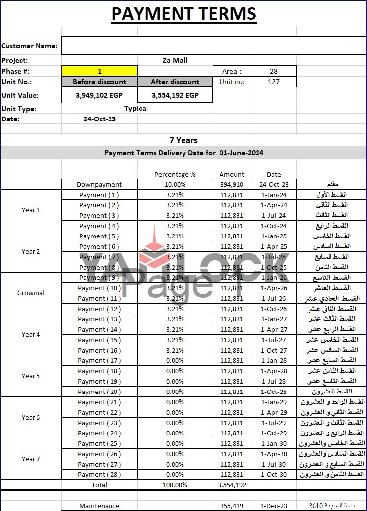 - Installement Details باقي الاقساط قسط ربع سنوي لحد 2030