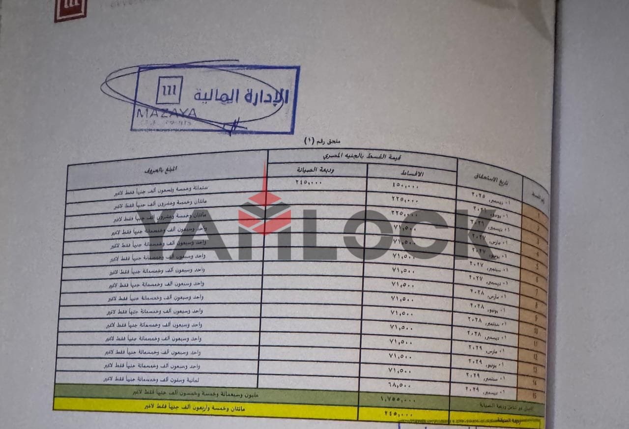 - Installement Details الباقي اقساط ربع سنوي لحد 2029